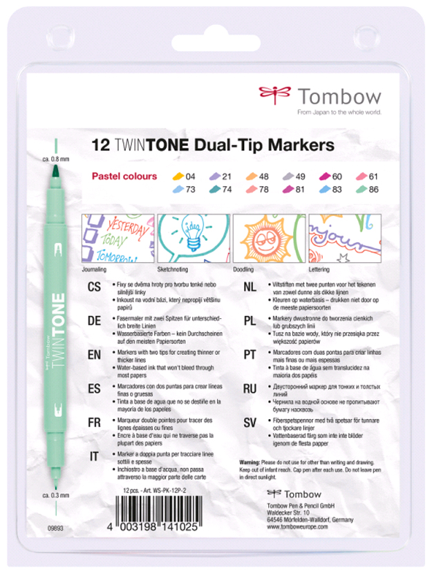 TOMBOW Doppelfasermaler 'TwineTone' Pastell Colours, 12er Se