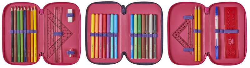 en polyester, étui scolaire en 3 parties, 3 fermetures à zip