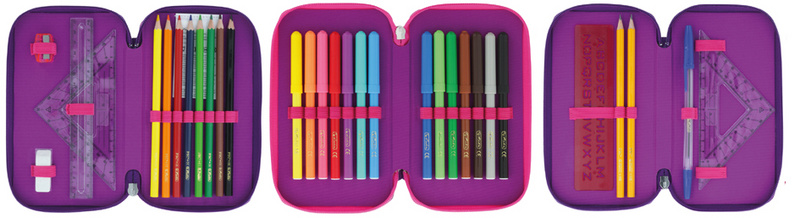 polyester, étui scolaire en 3 parties, 3 fermetures à zip,