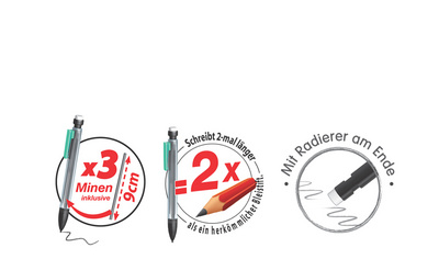 hexagonal, 3 mines incluses, avec gomme, couleur du manche: