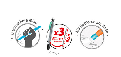 sortie de mine grâce au dispositif poussoir, gomme intégrée,
