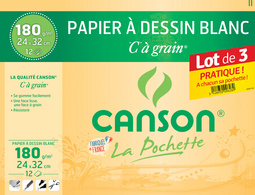 CANSON Papier à dessin 'C' à grain, 240 x 320 mm, lot de 3