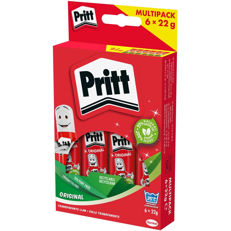 Pritt Bâton de colle 6 x 22 g, en multipack, sans solvant