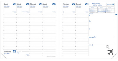 13 mois, couverture finition surpiqûre, reliure cousue