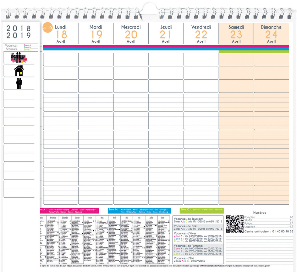 QUO VADIS Calendrier Family Planner hebdo, 2017/2018