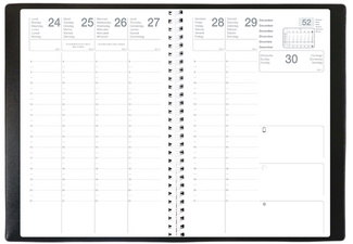 1 semaine sur 2 pages, large espace de notes, multilingue,