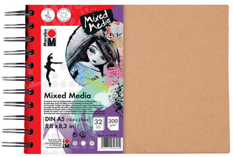 Marabu Cahier à spirale 'Mixed Media', format A5, 300 g/qm,
