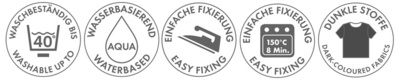 forte pigmentation, après fixage, résistant au lavage jusqu'