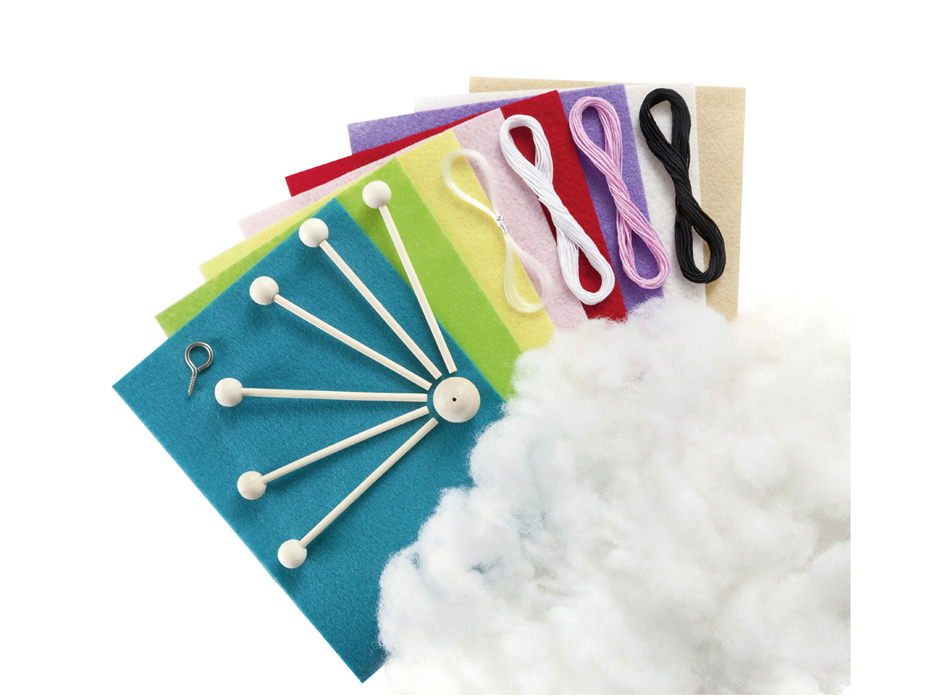 1x une étoile mobile en bois, 8x plaques de feutrine, 1x fil