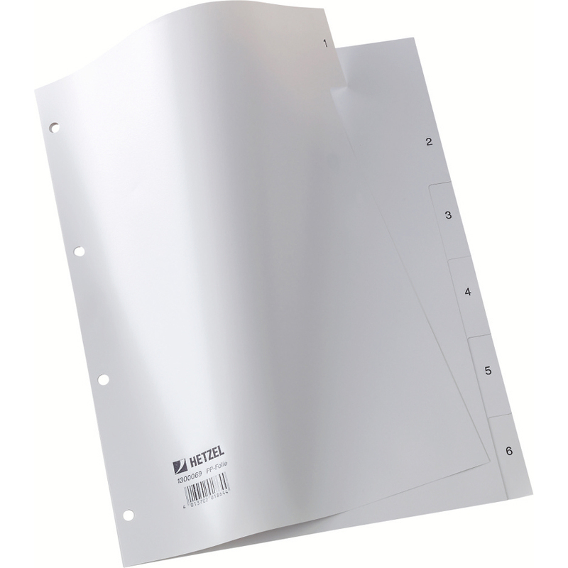 HETZEL intercalaires en plastique, chiffres, A4, 1-6, PP,