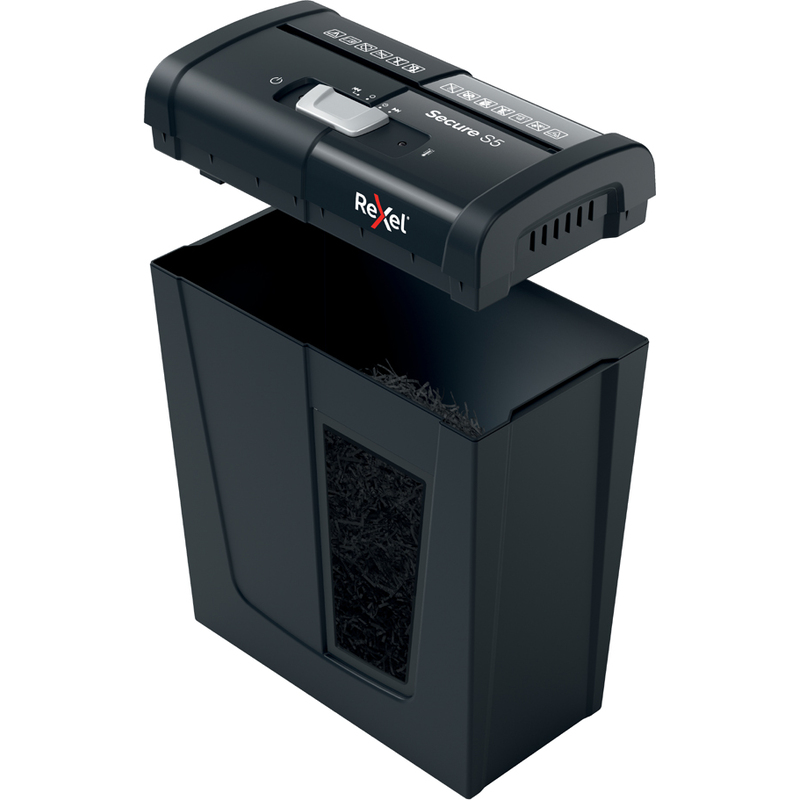 REXEL Destructeur de documents Secure S5, bandes 6 mm, noir
