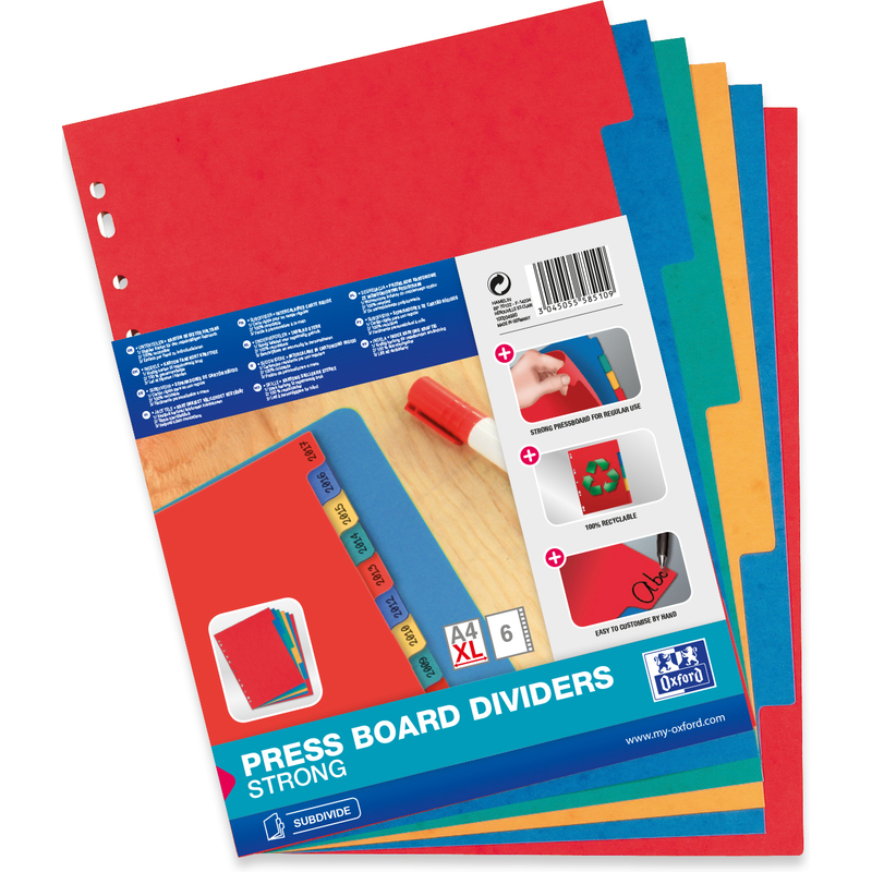 Oxford Intercalaires en carton, uni, format A4+, 6 touches
