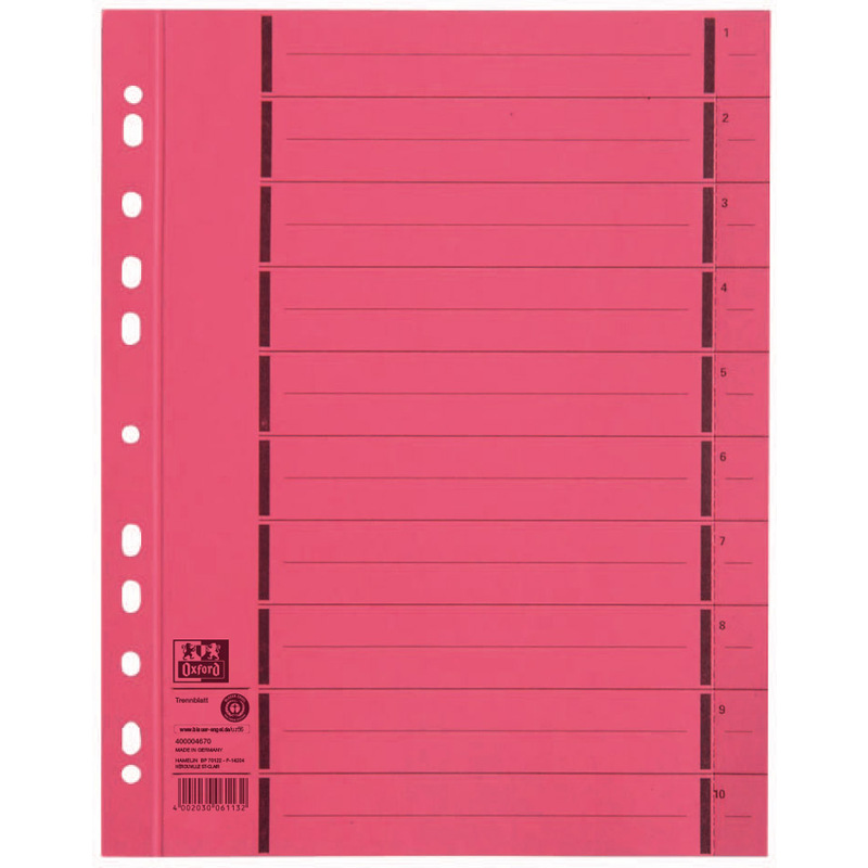 Oxford Intercalaire avec perforation, A4 extra large, rouge