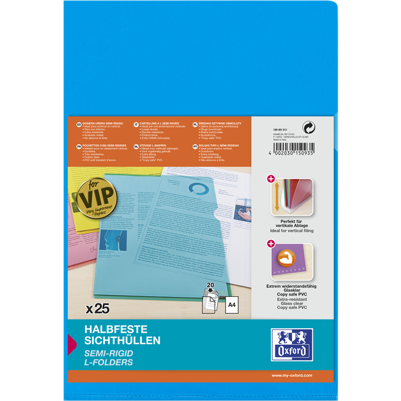 Oxford Pochettes coin Premium,A4,PVC,transparente,rouge x 25,