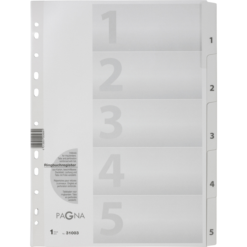 PAGNA Intercalaires, carton, chiffres 1 - 5, A4, 5 touches