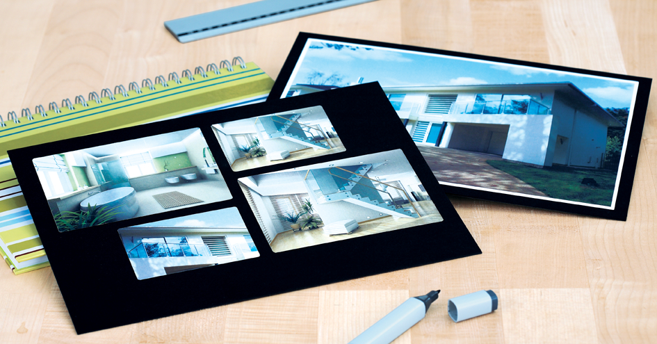 avec marge, papier glossy, adhésion permanente, coins
