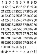 84 x 120 mm, chiffres 0 - 9 + d'autres signes, hauteur de