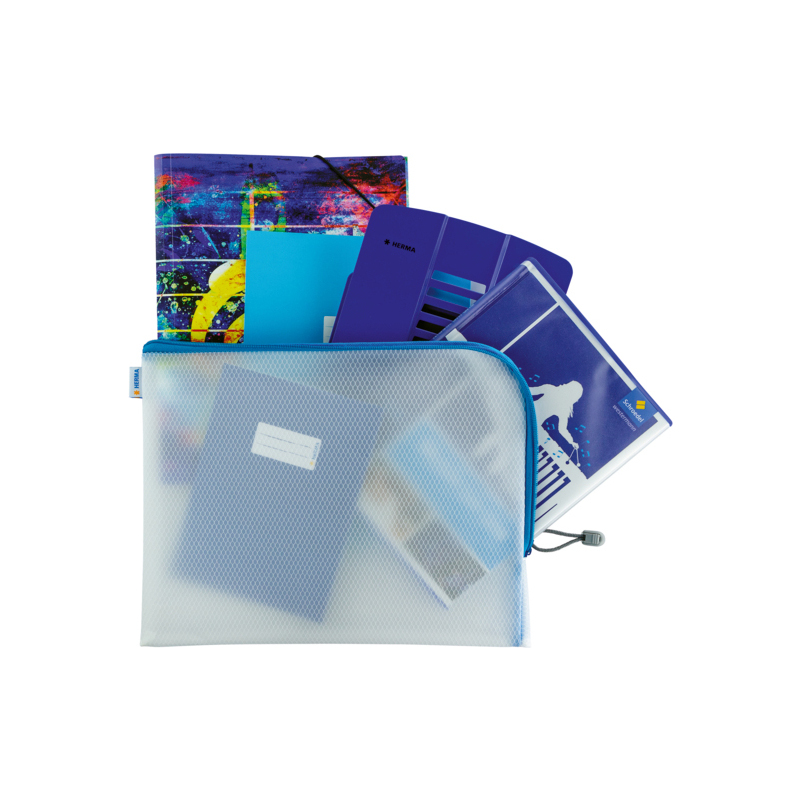 HERMA Pochette à fermeture à zip 'Mesh Bags', A4, bleu