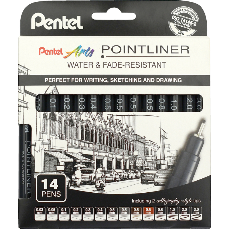 Pentel Feutre technique permanent Pointliner, set de 14