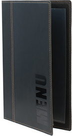 pochette en plastique aspect cuir, inscription 'MENU', avec