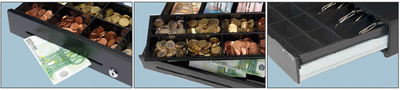 8 compartiments pour pièces, 4 pour billets - amovibles,