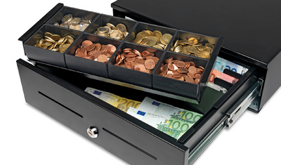 8 bacs à monnaie / 8 bacs à billets, caisse amovible,
