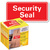 sur le paquet, étiquette 'Security Seal' international, pour