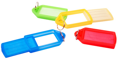 en plastique, avec étiquette clanche, inscriptible et