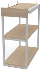 blanc, plateau : décor chêne, cadre en tube d'acier thermo-