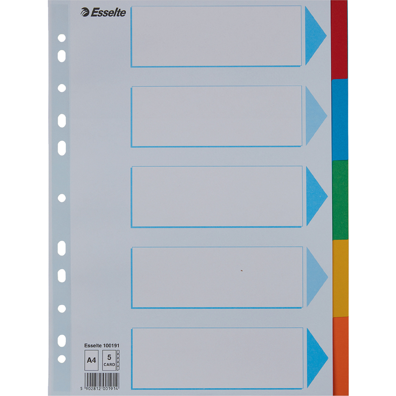 Esselte Intercalaires en carton, uni, A4, 5 touches