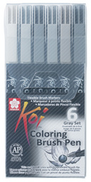 SAKURA Stylo pinceau Koi Coloring Brush, étui de 6, gris