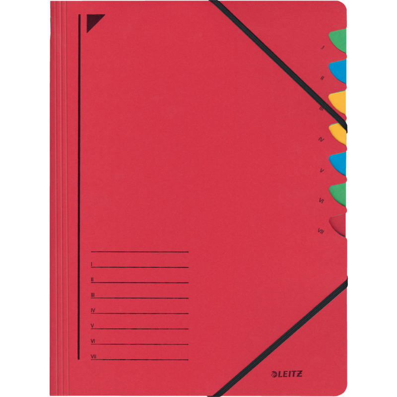 LEITZ Chemise trieur, A4, carton, 7 compartiments, rouge