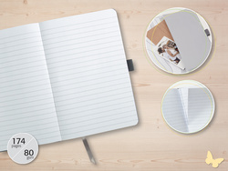 135 x 203 mm, ligné, papier blanc 80 g/m2, couverture rigide