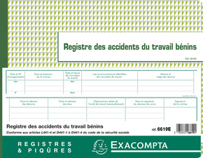 EXACOMPTA Registre des accidents du travail