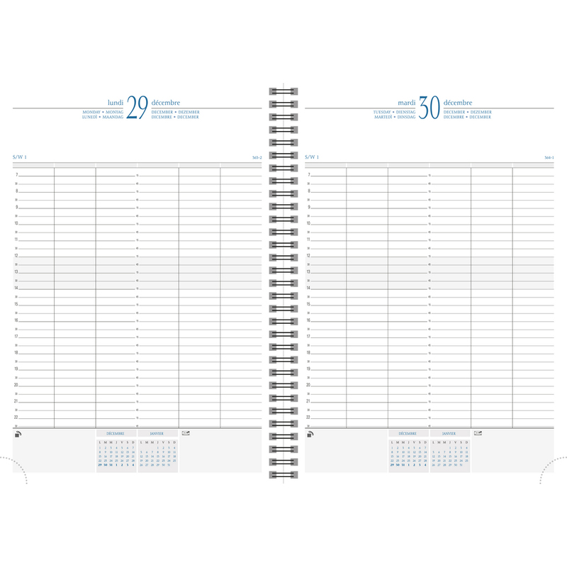 1 jour à la page, couverture toile bordée, 297 x 210 mm,