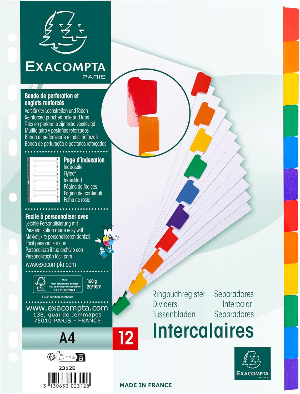 EXACOMPTA Intercalaires en carton, A4, 12 touches