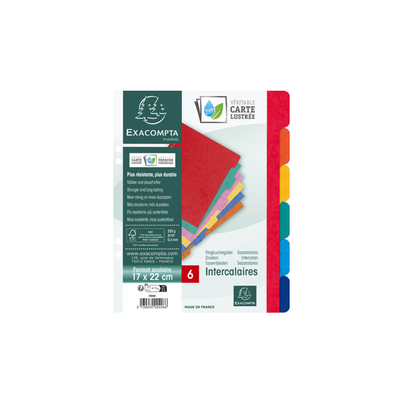 EXACOMPTA Intercalaires en carton, 170 x 220 mm, 6 positions