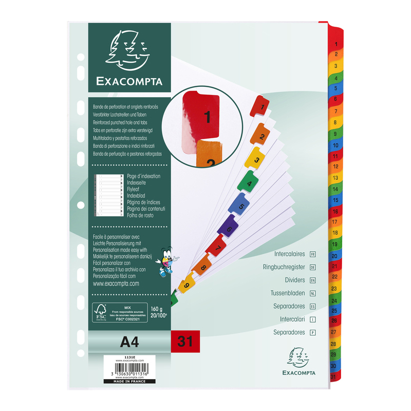 EXACOMPTA Intercalaires en carton 1-31, A4, 31 touches