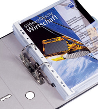 en plastique, avec attache et perforation universelle,