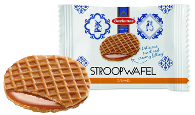 délicieuse gaufre fourrée au caramel, emballage unitaire,