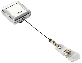 DURABLE porte-badge CHROME QUADRO, avec enrouleur, argent